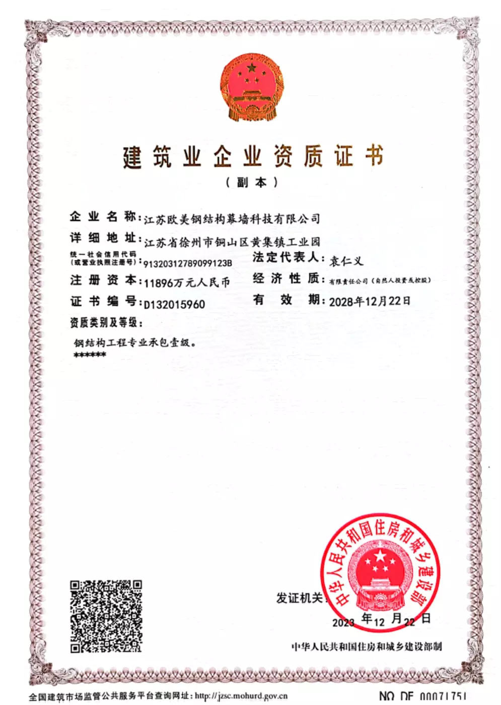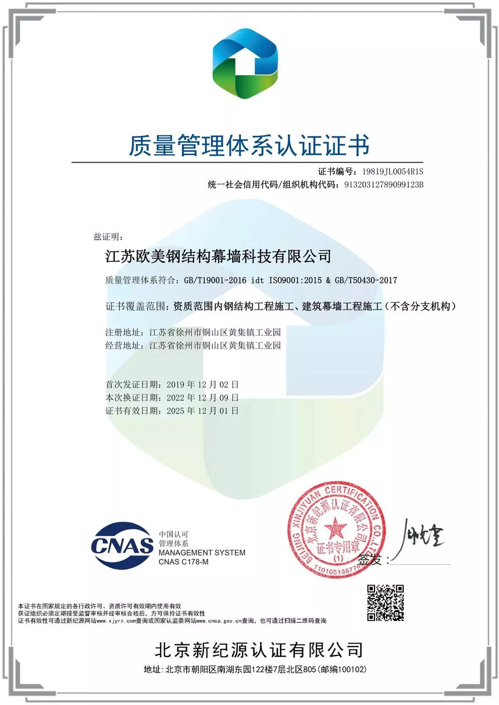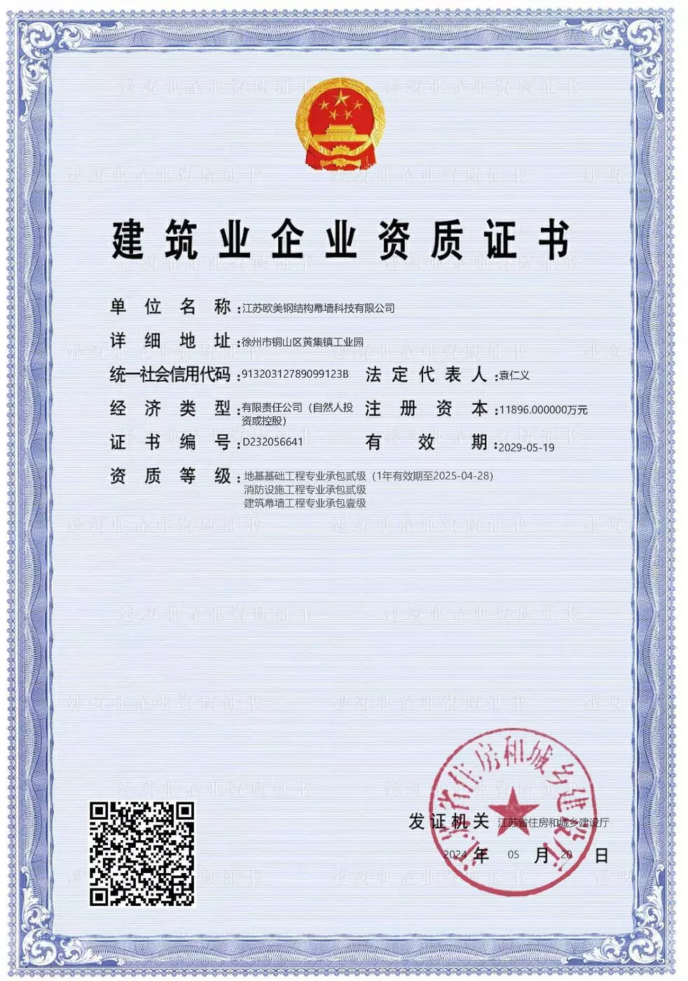 The company holds Grade-A steel-structure design, Special-grade fabrication, Grade-1 steel-structure and curtain-wall contracting, integrating design, fabrication and construction. It is a national high-tech private enterprise and a provincial R&D center.